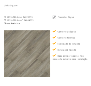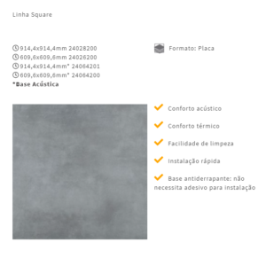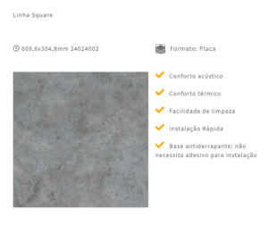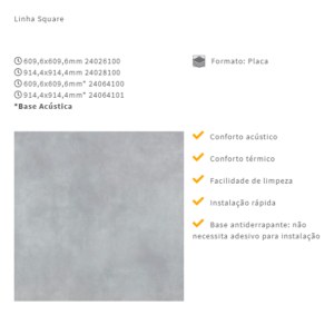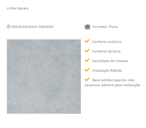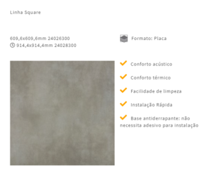 A coleção de pisos vinílicos Tarkett Square Set possui base antiderrapante e não requer adesivo em sua instalação. Agora disponível também em base acústica – ainda mais conforto acústico, além de 8 novas cores.