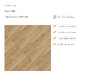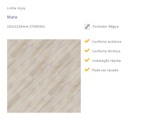 De instalação fácil, rápida e sem sujeira, a linha de pisos vinílicos Tarkett Injoy® oferece o melhor custo-benefício da categoria.
